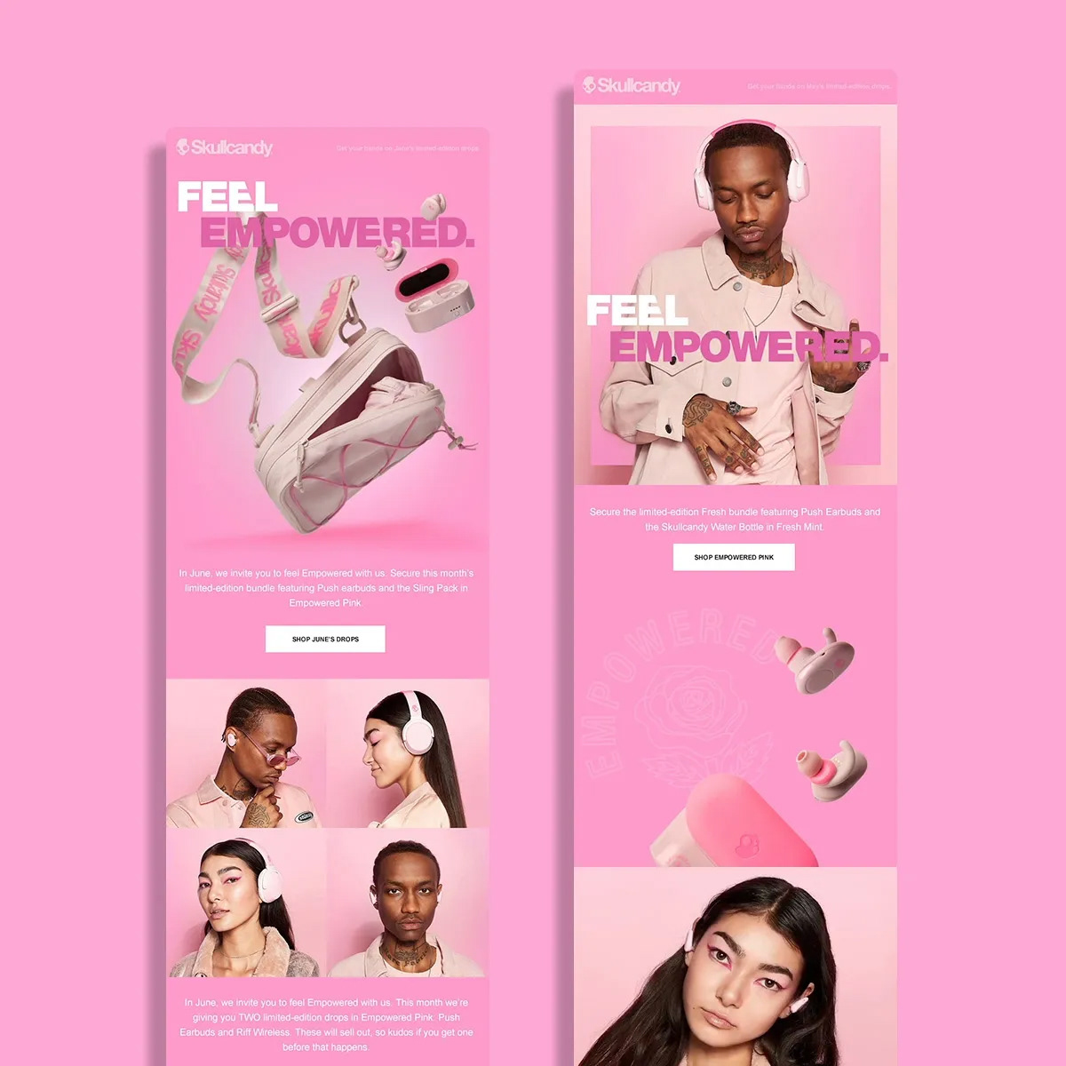 Skullcandy 12 Moods. This campaign aimed to highlight the brand's vibrant personality and connect with audiences through emotions, music, and creativity. Each month, the campaign focused on a specific "mood," showcasing it with curated playlists, exclusive product drops, and visual content that matched the theme. Below is the empowered experience.
